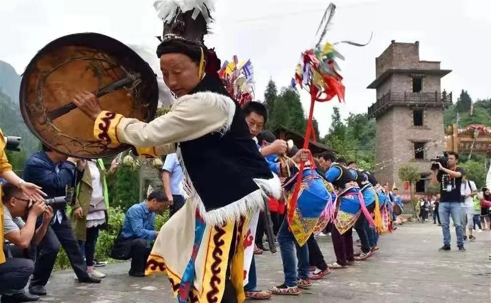 羊皮鼓舞是羌族社会实践、仪式、节庆活动中不可缺少的部分,神秘而带有浓厚的原始宗教祭祀色彩。其动作既刚劲有力,又卑微谦逊,体现出舞者对天地万物的敬畏之心。羌族羊皮鼓舞在2008年经国务院批准列入第一批国家级非物质文化遗产名录。