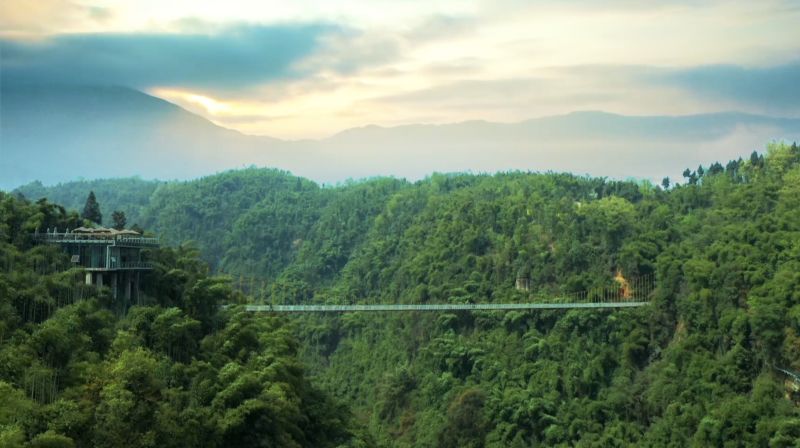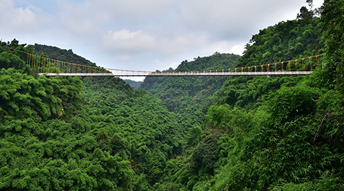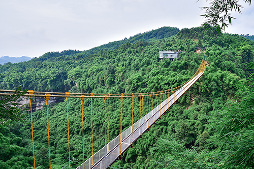 The country's first high-altitude narrow-single-single-span twin-tower suspension bridge with a length of 165 meters and a width of 1.5 meters, 105 meters from the ground and a span of 199 meters, is the longest span of the country and the highest distance from the ground. The pedestrian walks on the cable bridge like a cloud, hence the name "Xianji Muyun Bridge". Standing on the edge of the abyss, the gap between the greenery and the greenery, seeing the potential of the clear water, into the wonderland of the world.