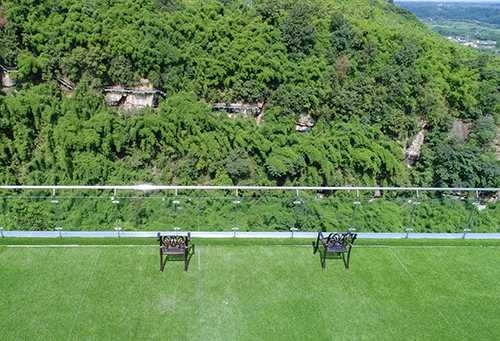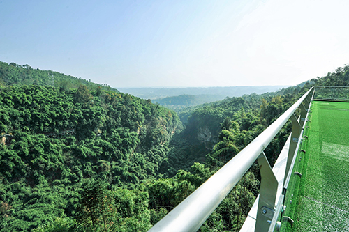 With an area of about 400 square meters, the spectacular architecture and Jinxiu Mountain River are perfectly integrated. The entire platform is built along the rock wall and stands on the top of the mountain peaks. It looks like a dangerous place, but it is located in the mountains. Dine on the steep cliffs near the vertical, the clouds are lingering, and the 3 60-degree dining visuals allow the high-altitude glass plank roads, the fairy-tale Muyun Bridge, the river and the bamboo sea to have a panoramic view.