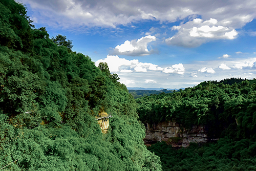The glass plank road built on the half-waist wall is 260 meters long, 1.5 meters wide and nearly 100 meters high. It is the perfect combination of "water, forest, light, stone and sound". The unforgettable scenery here has become the perfect background for wedding photography and has become the love path that every couple loves.