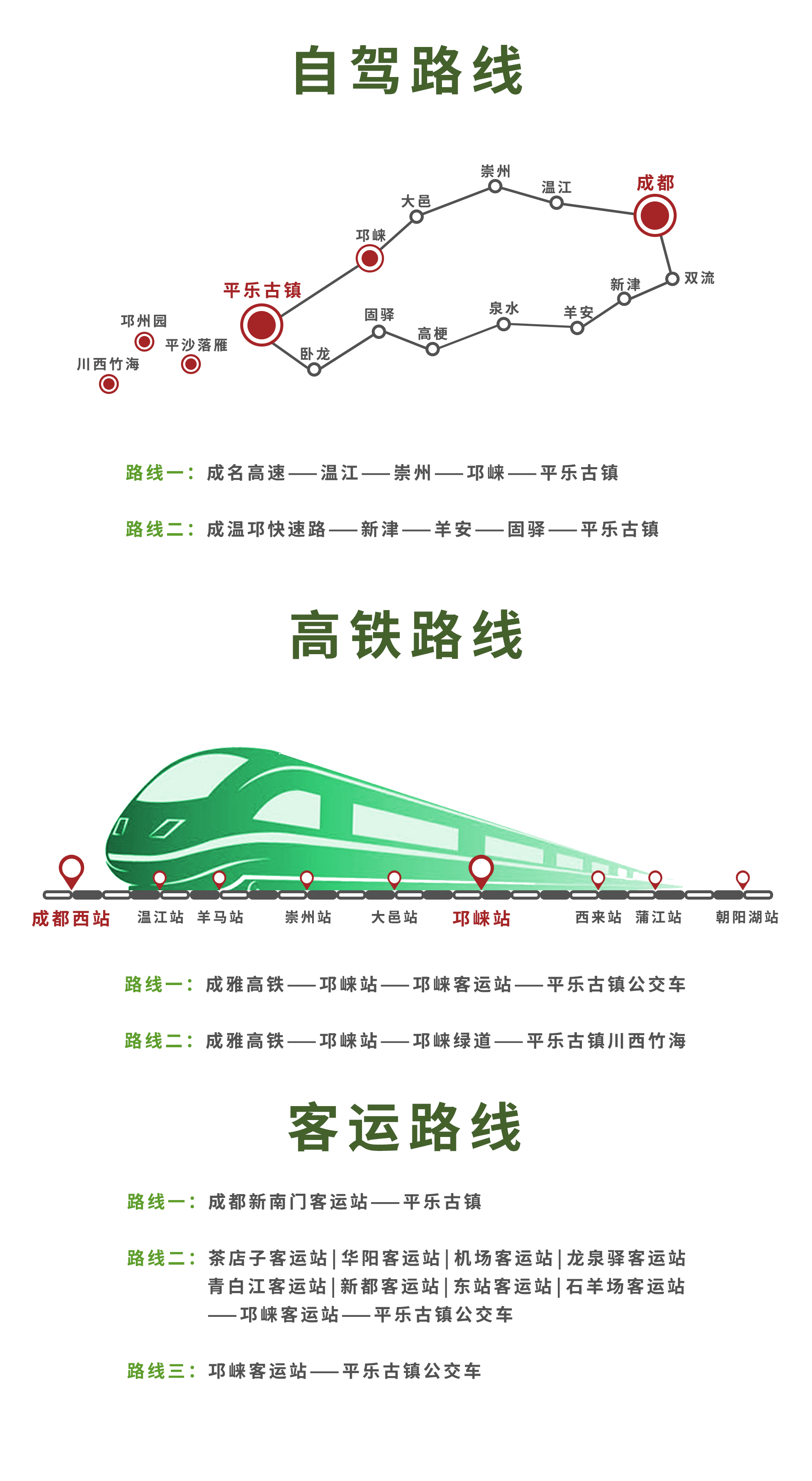 路线1:成温邛高速:成都—邛崃—邛名高速—直达平乐古镇